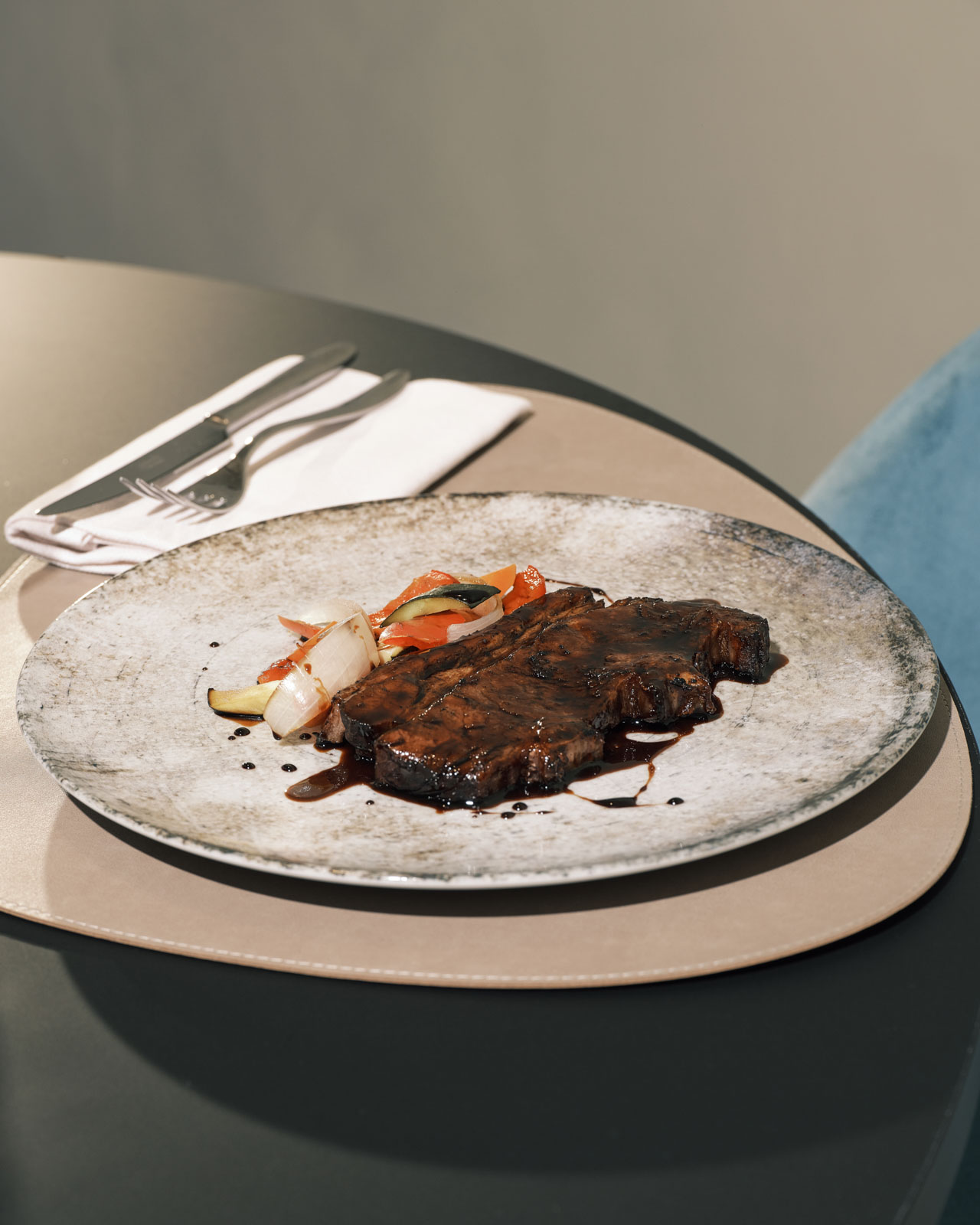 Una cucina moderna e seducente dai sapori intensi. Forti contrasti in perfetto equilibrio, profumi persistenti, forme definite e colori vividi sapientemente bilanciati tra loro. Un menù che stuzzica i tuoi sensi, gioca coi sapori ed abbraccia il fuoco esaltando i piaceri della carne.